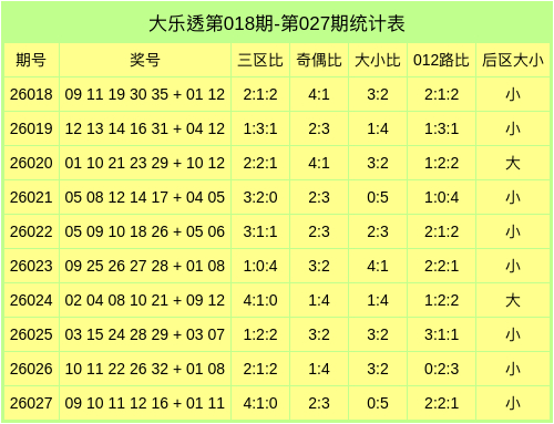 大乐透第26028期前区分析